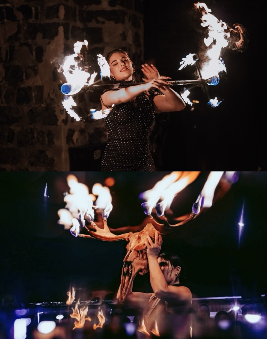 Eldkonst med fin dans och utryck, en imponerande eldshow som uppskattades av våra gäster!