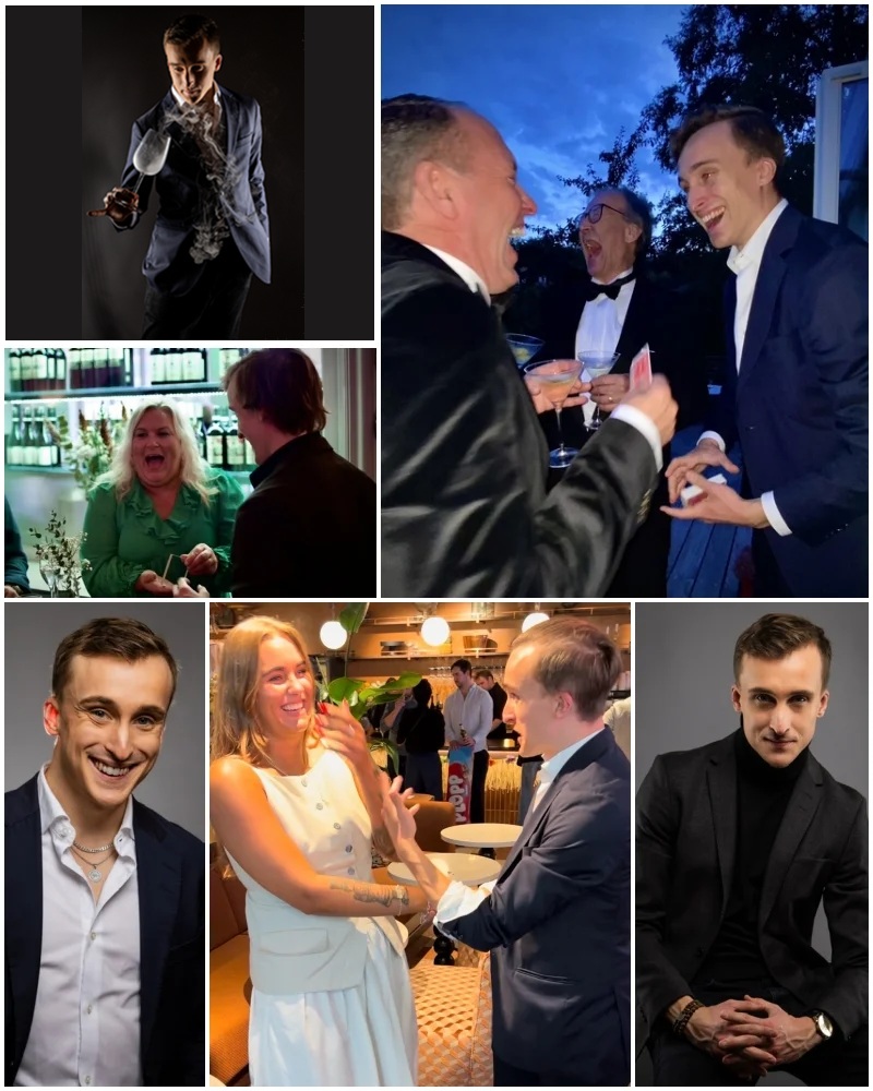 Johannes kan verkligen lyfta minglet samt vara med som en "sidekick" under middagen i smågrupper likväl som att framträda med trick framför publik. Johannes är väldigt social och utåtriktad och ett glatt inslag till Festen eller konferensen. Vi anlitade honom på min frus födelsedagsfest och det blev en succe'.