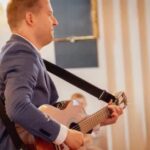 Jag är en trubadur som är van vid att spela på företagsfester, erbjuder även MusicQuiz.